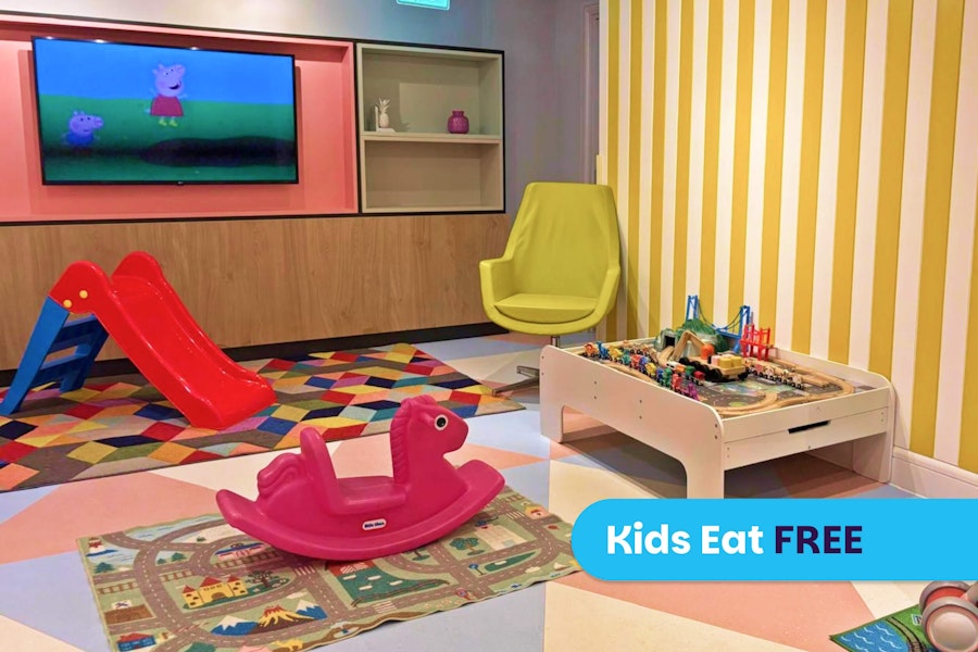 Children will love our indoor play area with Peppa Pig playing on a flat-screen TV so they can watch their favourite show! They will also enjoy free activity packs on arrival, splash around in the hotel pool, eat for free in the Open Lobby for dinner and wind down with free milk and cookies before bedtime.